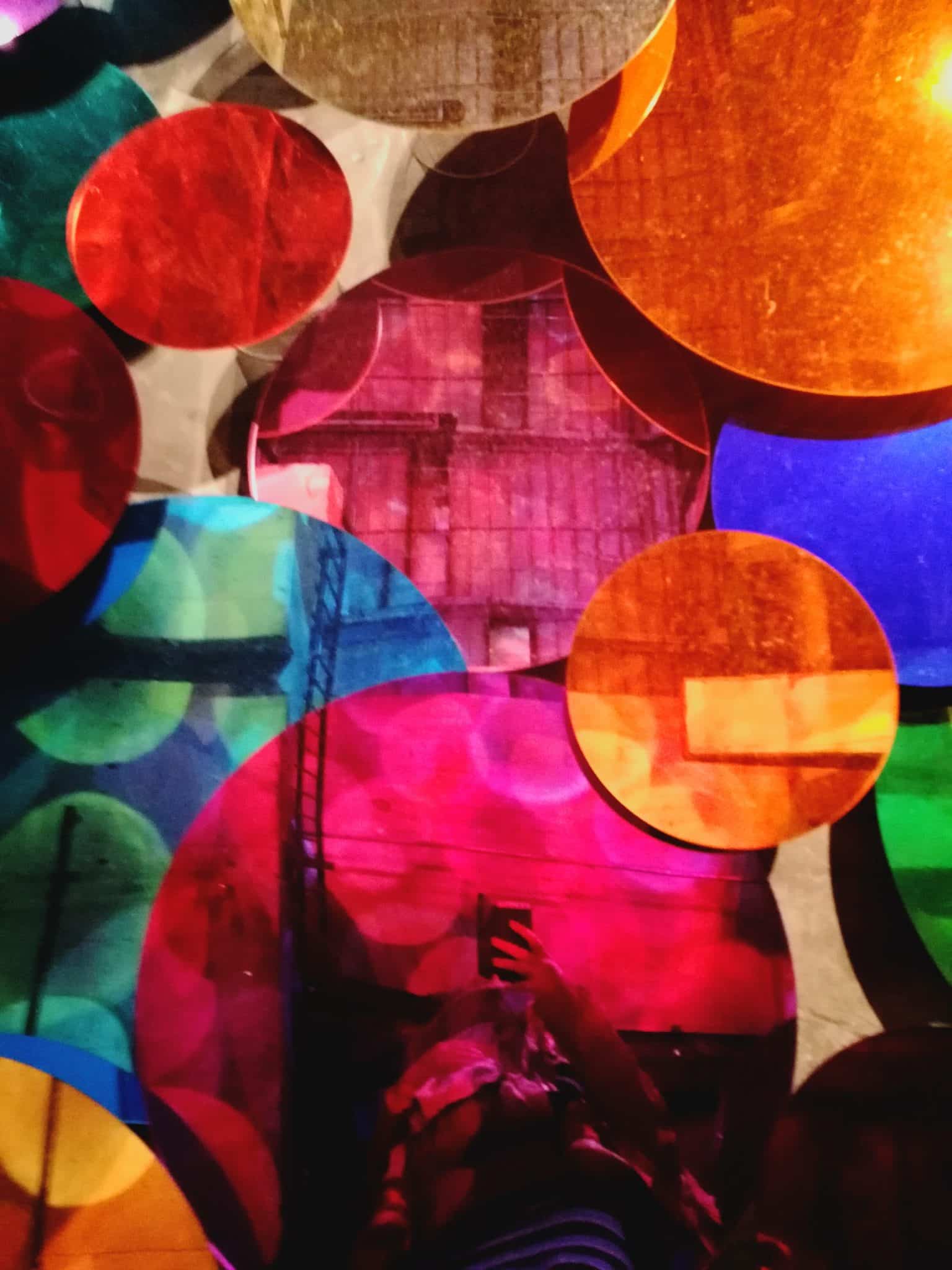 In dieser Woche gibt es mal zwei Bilder, denn ich stand dort vor diesen Kreisen und Farben und dachte an Macarons. Ehrlich, ich wollte danach welche haben und so haben wir auch welche danach gekauft, auch farbenfroh und lecker. Lustig wie sehr Kunst den Appetit anregen kann.