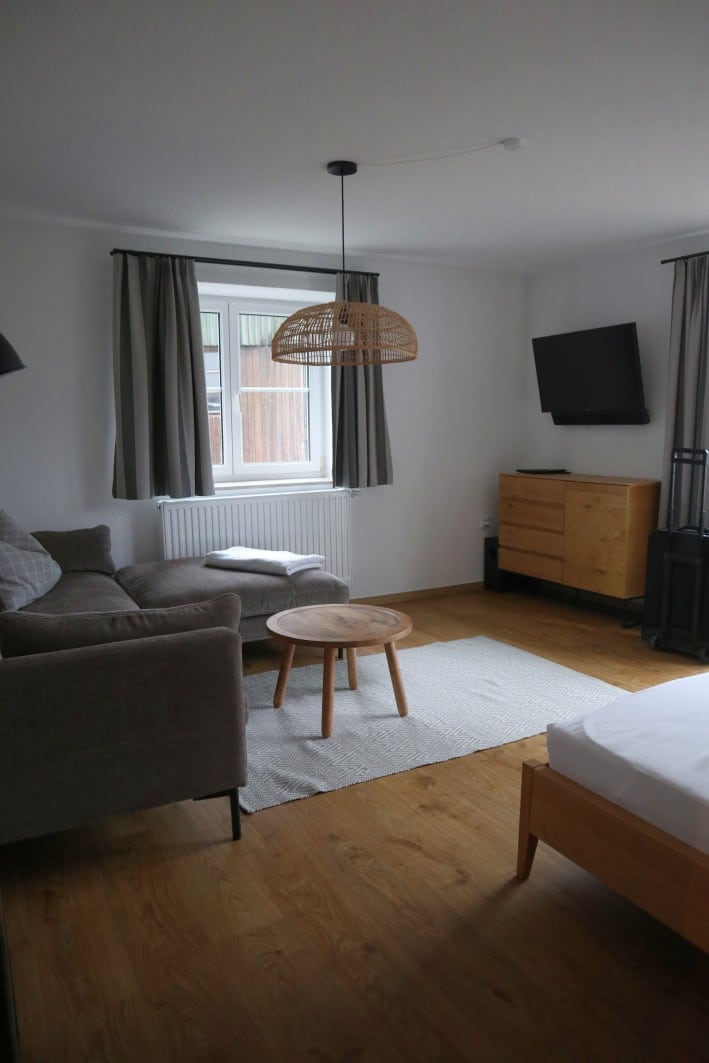 Als in den 1970er Jahre der letzte Bedienstete den Hof verließ, begann die heutige Altbäuerin mit der Vermietung von Gästezimmern. Damals noch urig und mit Abendessen am Familientisch. Heute sind es sieben Wohnungen mit einem hohen Standard. Hier ist man stolz auf die Geschichte des Ortes und der Familie, dies findet auch seinen Niederschlag in den Schwarzweiß Fotos, die die Wohnungen schmücken. Alles ist einladend und trotzdem autark gestaltet, jeder hat eigenen Wohnraum für sich und die Kinder.