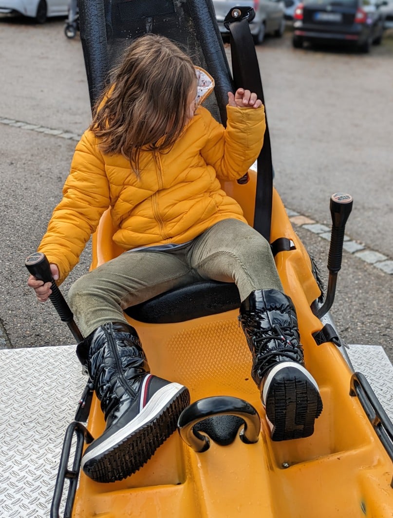 Nach einem Teller Kaiserschmarren, den wir zu viert teilen konnten und einigen Getränken begannen wir unsere Abfahrt. Die längste Sommerrodelbahn machte uns allen Spaß. Kinder ab 8 Jahren oder 1,40 m Größe können schon allein fahren. Die Abfahrt dauerte gut 10 Minuten und auch wenn meine Mitfahrerin K3 immer schneller wollte mir hat das Tempo ausgereicht. Auch Alu und K2 waren zufrieden.