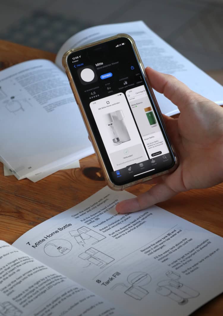 Über die App Mitte Home kontrolliert man die Anlage und erhält Infos über die Füllstände der Verbrauchsmaterialien wie der Mitte Home Mineral Cartridge – 2-in-1 Kartusche. Weiterhin kann man somit übers Handy schnell Nachschub besorgen, sollte einmal eine Kartusche leer gehen.