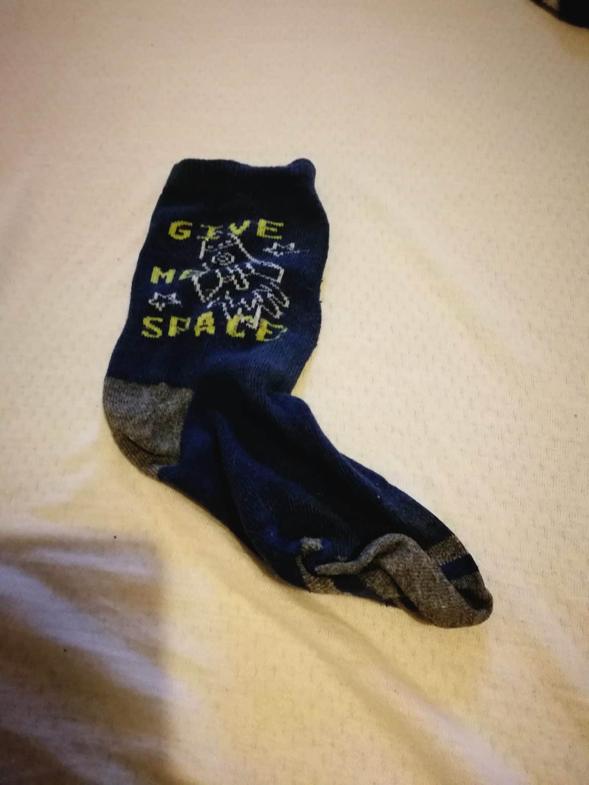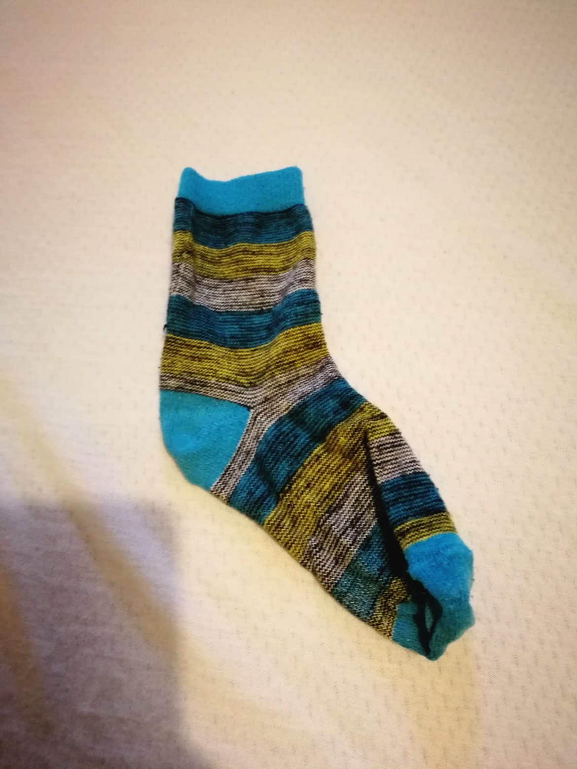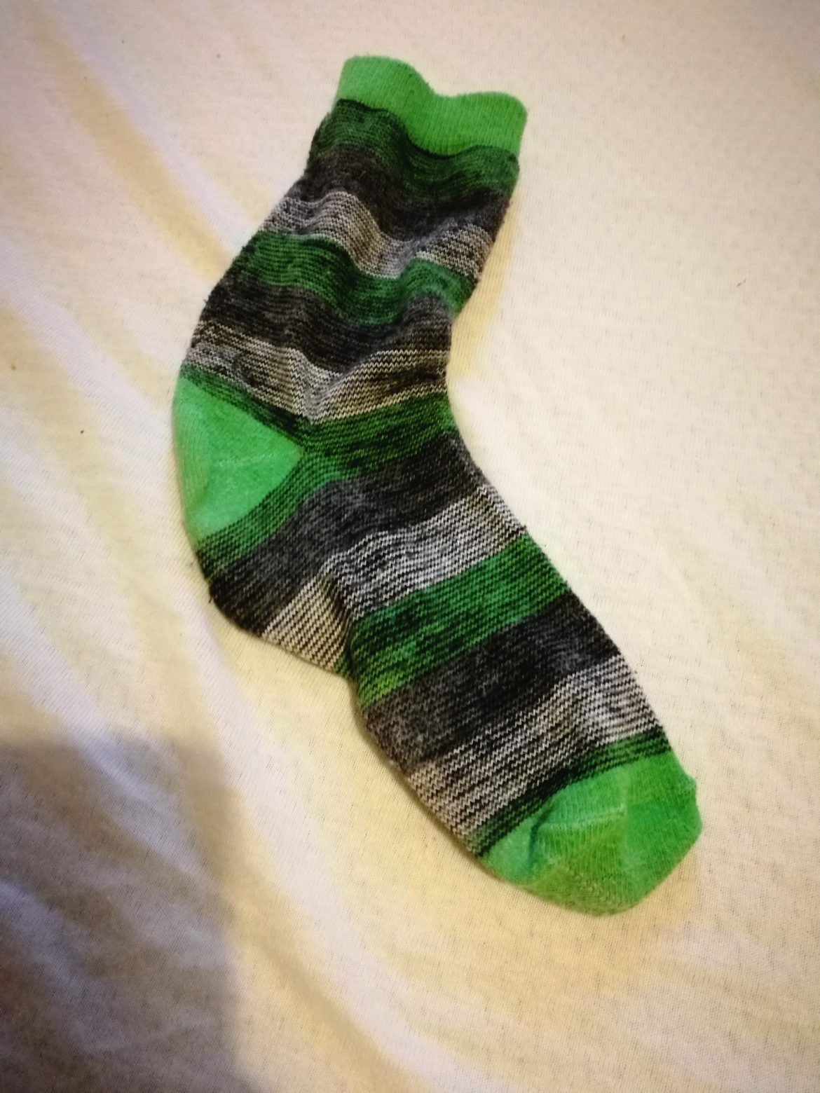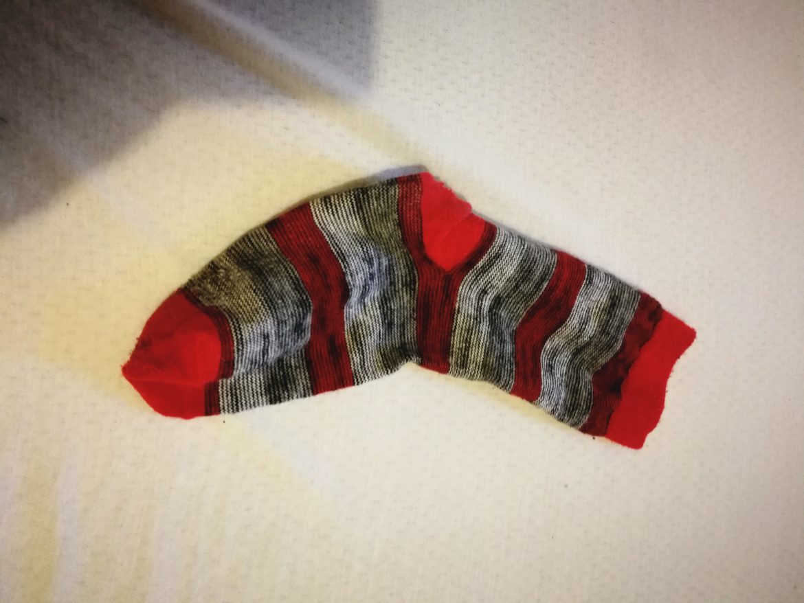 Wer eine Partnersocke daheim hat, eine die passen könnte, der kann sich gern melden und dann bringen wir die beiden Socken zusammen.