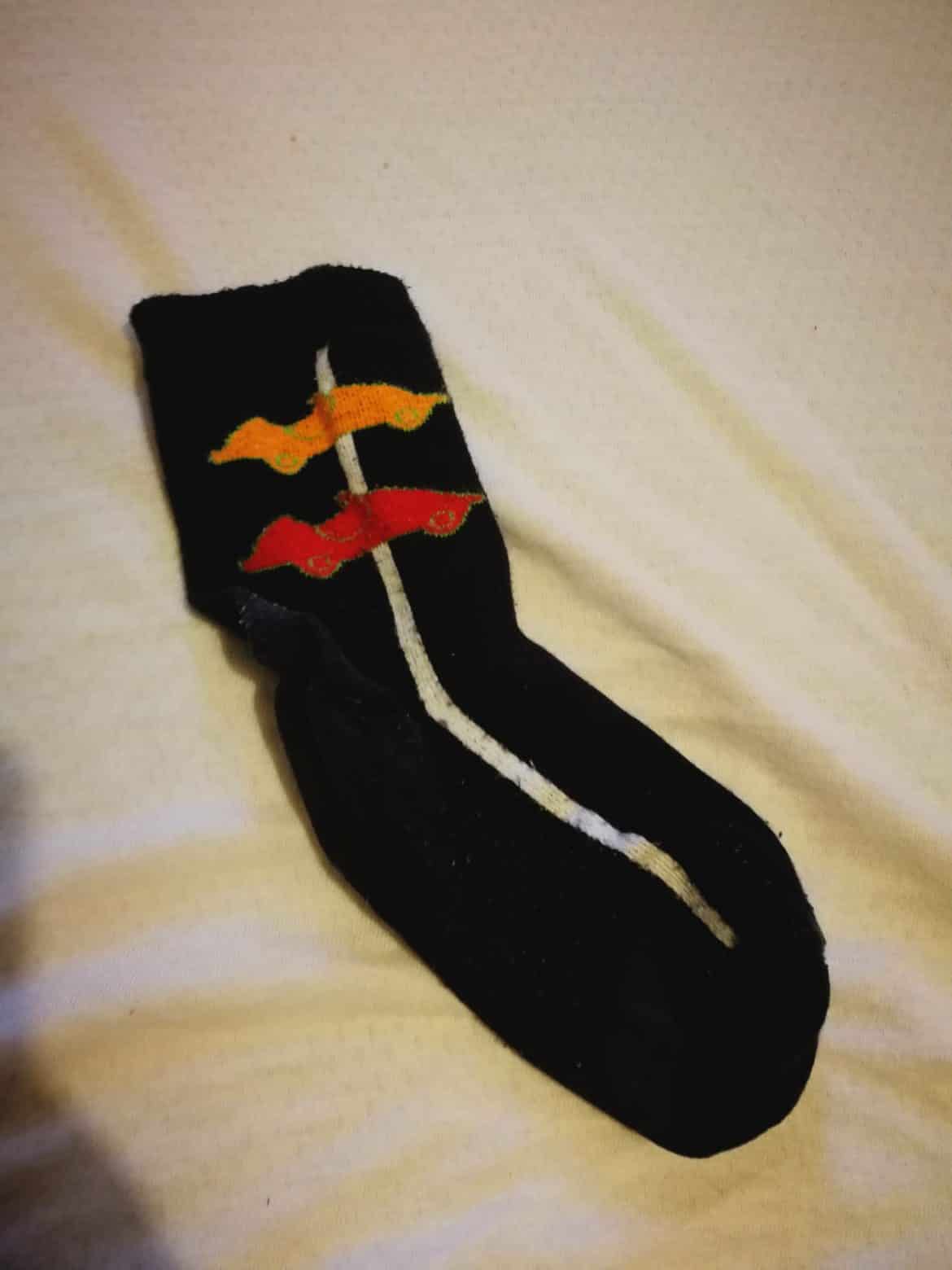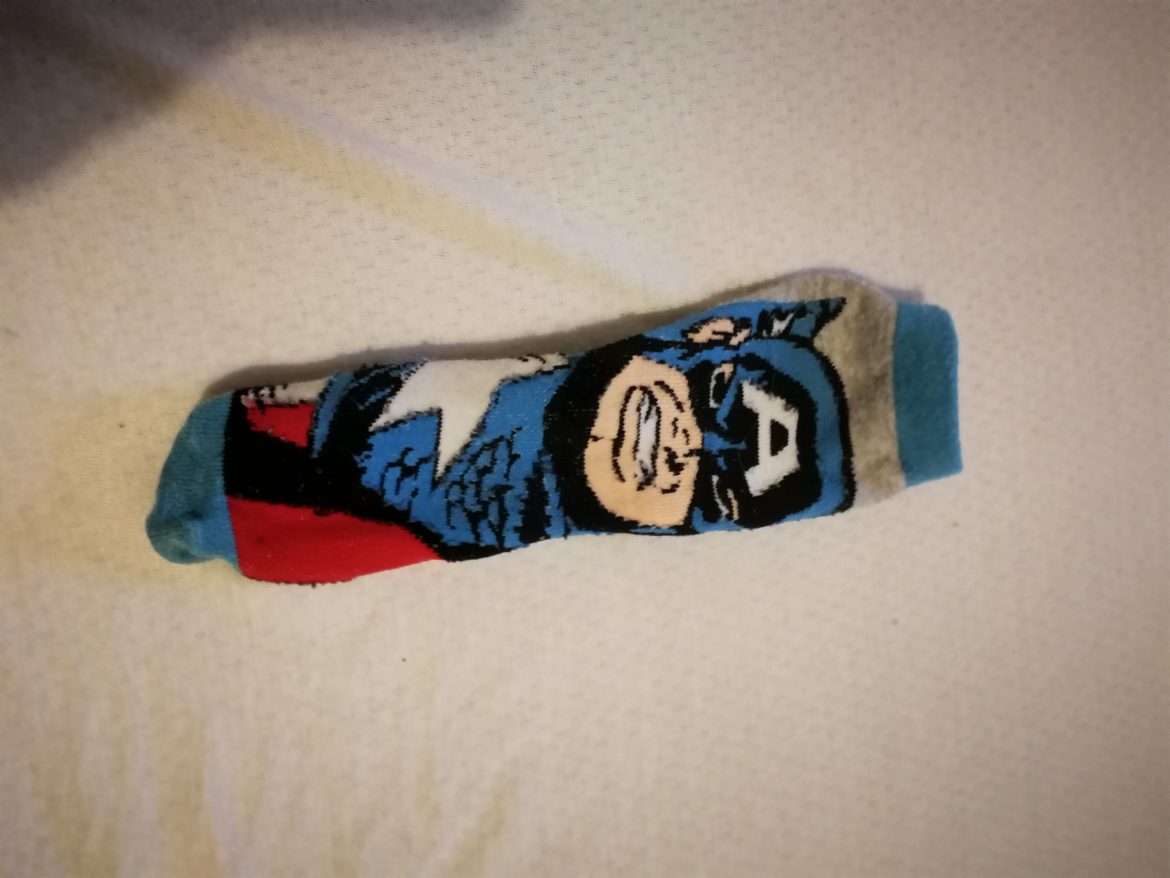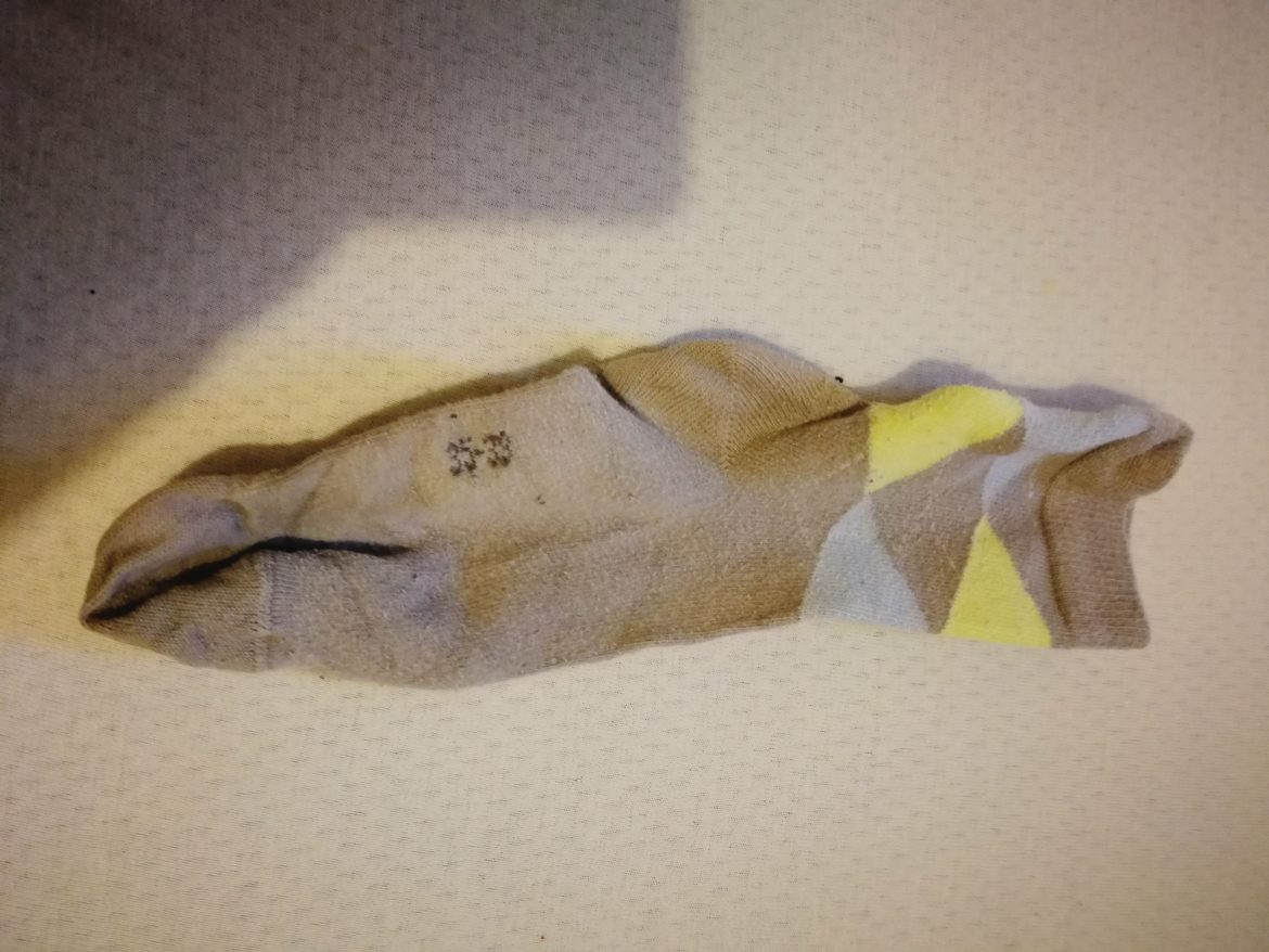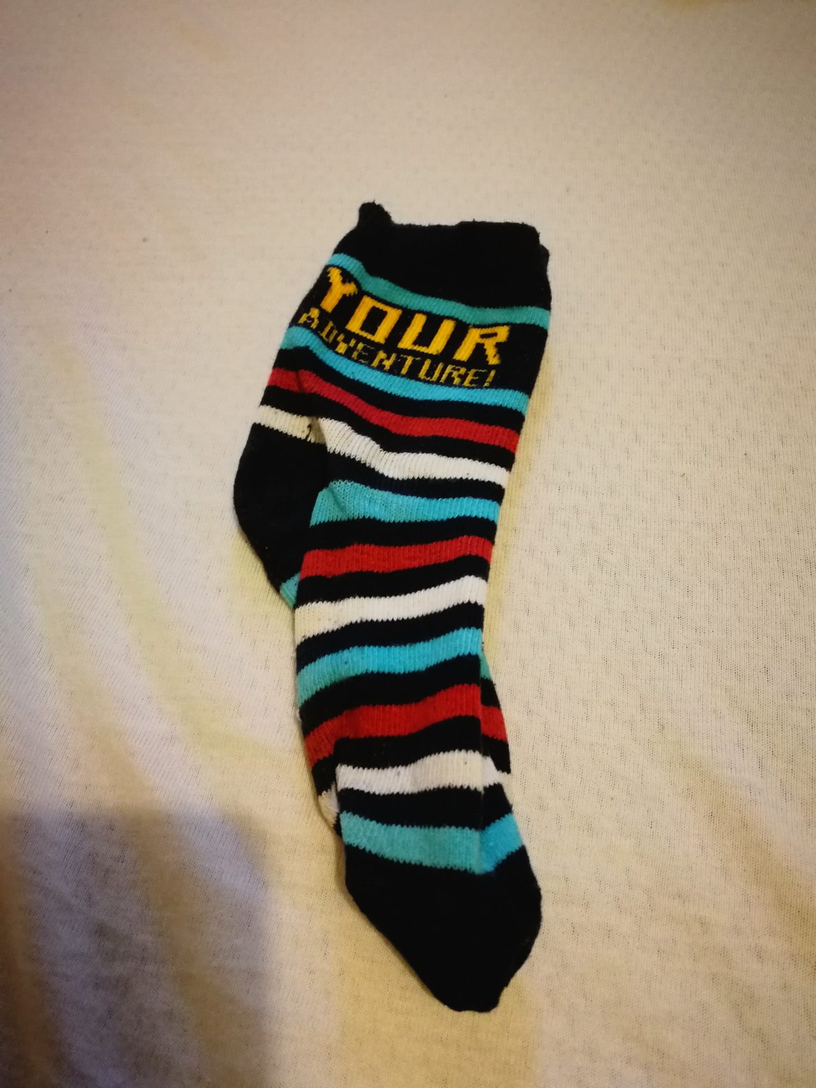 Wer eine Partnersocke daheim hat, eine die passen könnte, der kann sich gern melden und dann bringen wir die beiden Socken zusammen.