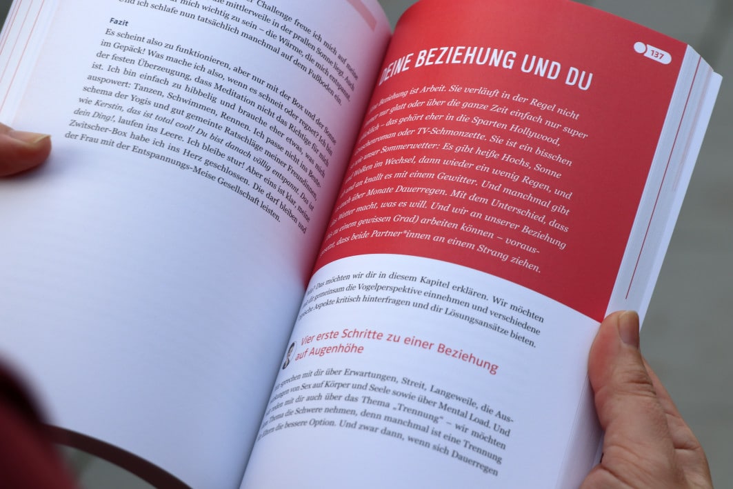 Darüber hinaus bietet das Buch verschiedene Infoboxen. „Der Werkzeugkasten“ gibt klare Anleitung. Im „PRO-TIPP“ kommen Fachleute zu Wort. Mir gefiel die „Spielwiese“. Hier gibt es Fragen und Anregungen für uns als Paar. Ein guter Ratgeber, wieder anders als andere und oftmals auch an das anknüpfend was wir auf diesem Blog immer wieder thematisieren.