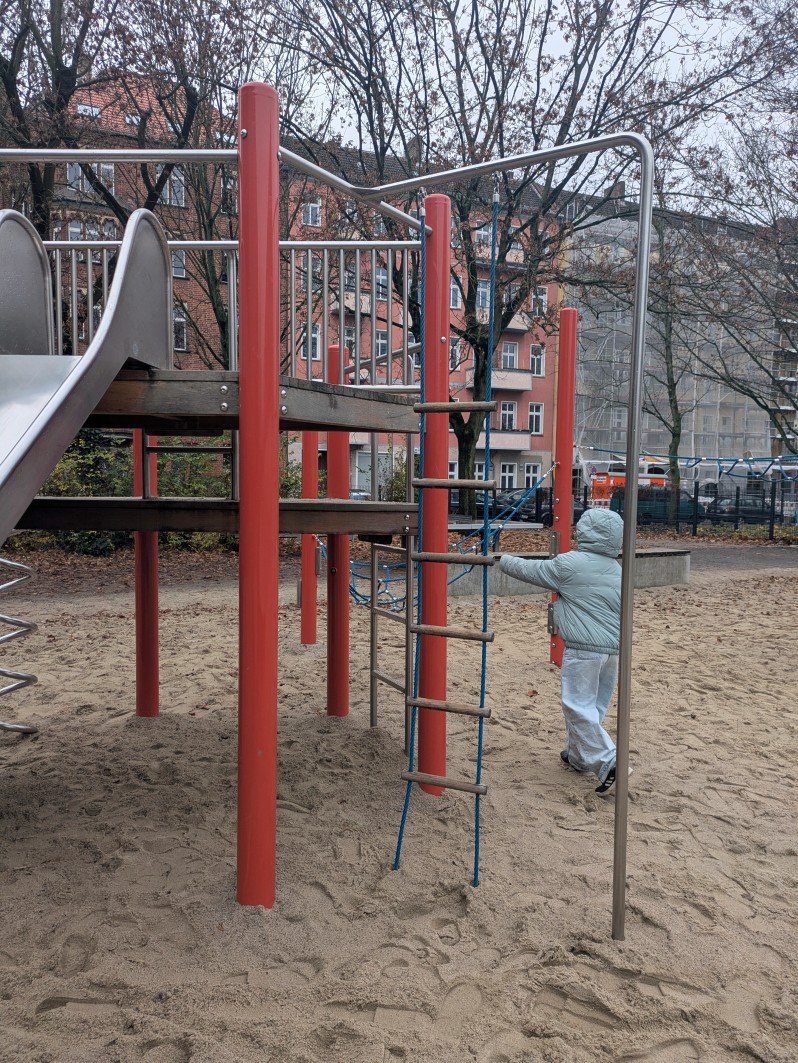 Das Kind uns ich gehen sogar noch auf den Spielplatz.