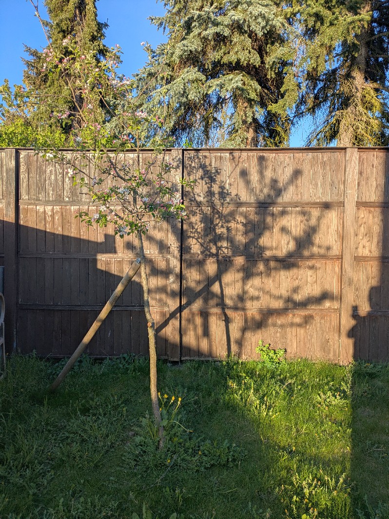 Abends daheim beim Apfelbaum.