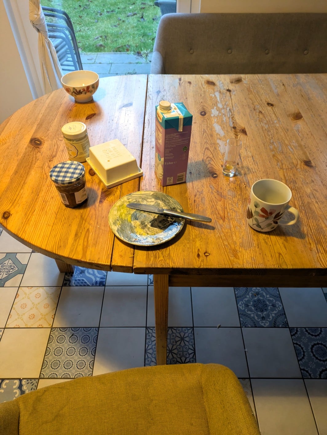 Hallo Samstag. Am Morgen wird erstmal ein Geschenk gebastelt.