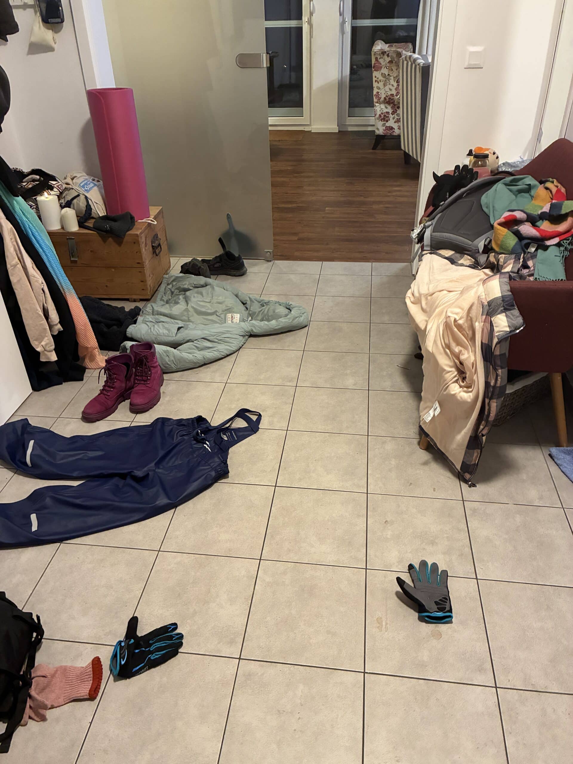 #7 Die Katze guckt lustig als ich eigentlich los will zum Kinderarzt und dann der Mann aber zur Tür reinkommt und die Fahrt mit dem Kind zur Impfung übernimmt (juhu)