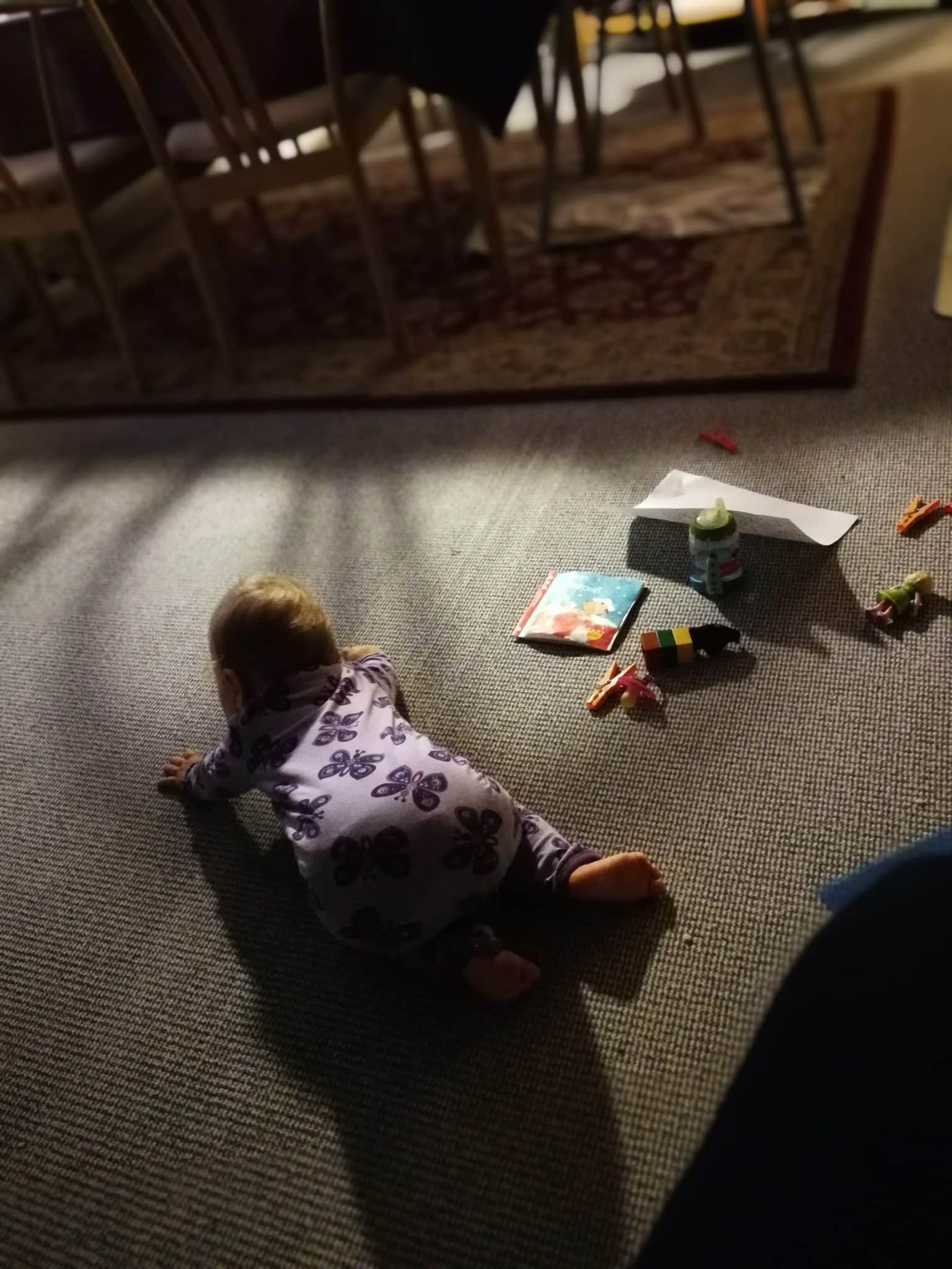 Am Nachmittag steht für die Jüngste wieder “Rein ins Haus – Raus aus dem Haus” als Spiel auf dem Programm (die roten Socken verraten das Kind).
